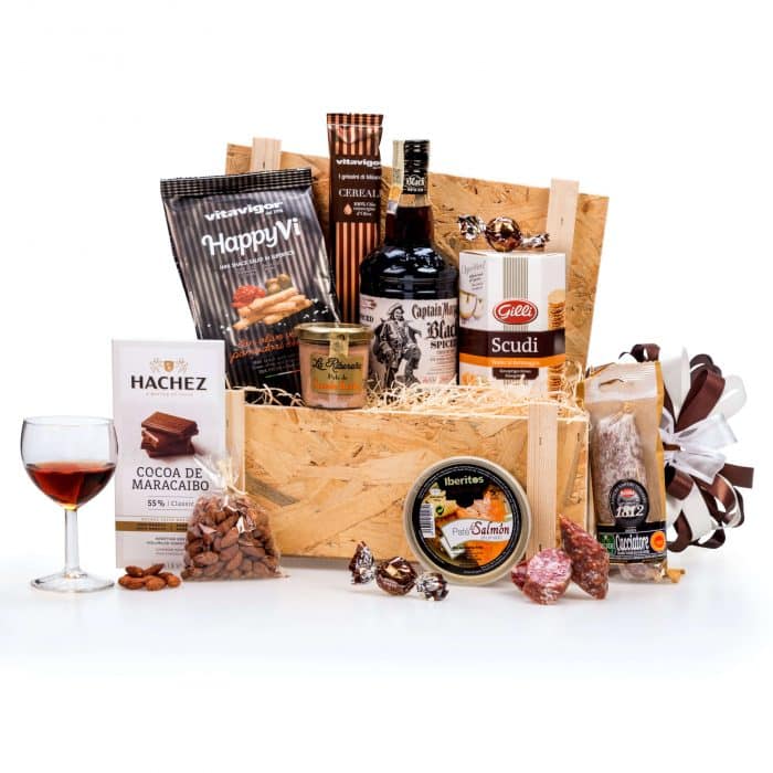 Tento dárkový koš obsahuje čerstvé potraviny (klobásky, sýry atd.). V letních měsících nahrazujeme za produkty trvanlivé.