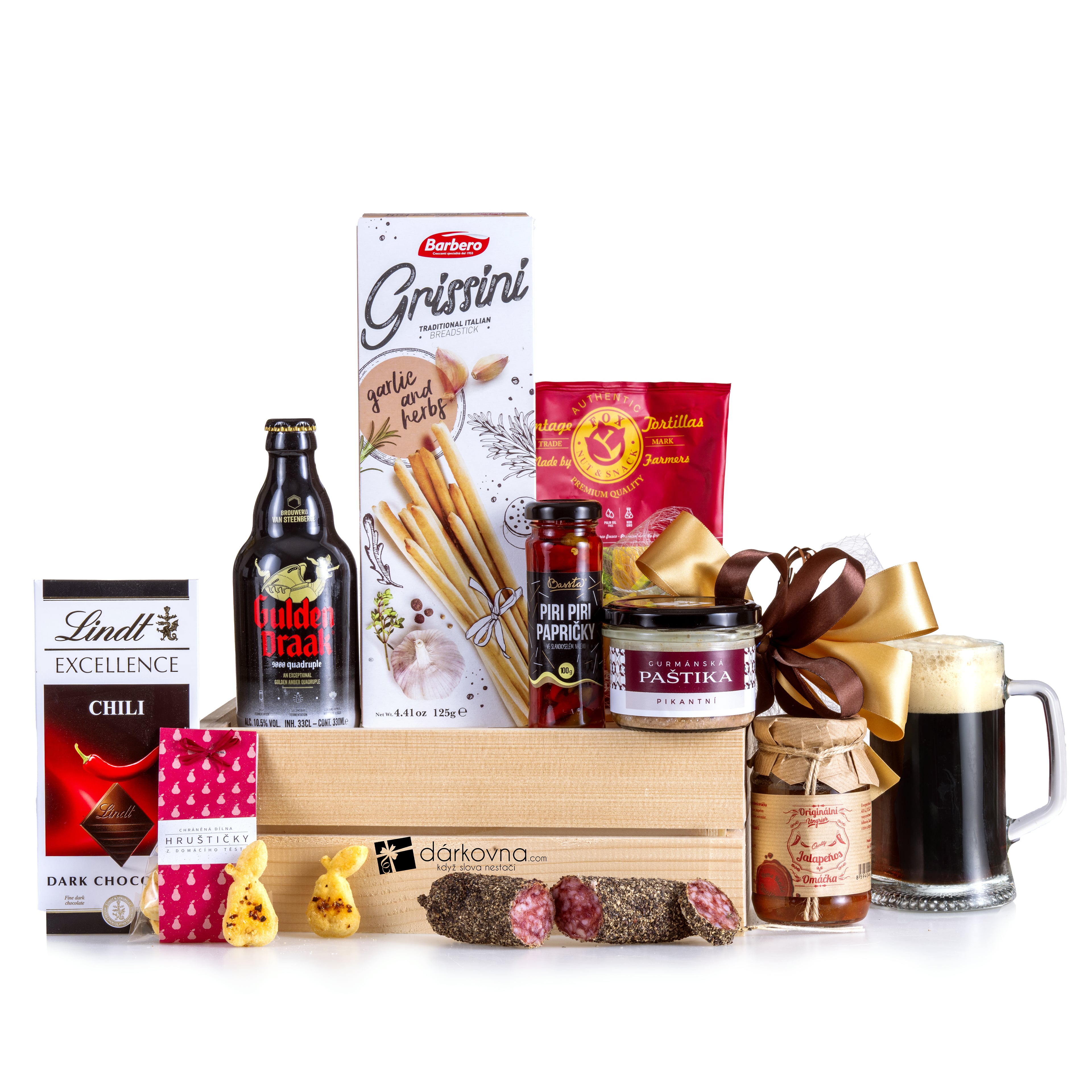 Pořád nevíte jakým dárkem potěšit pořádného chlapa? Co třeba dárkovým košem plným vybraných ostrých delikates, pikantních pamlsků pro opravdu ostré jazýčky. Chuť a vůně pikantního chilli nebo zeleného pepře dostane každého muže. A až bude potřebovat uhasit žár v ústech, přijde mu vhod pořádný lok dobrého piva.