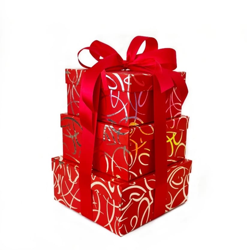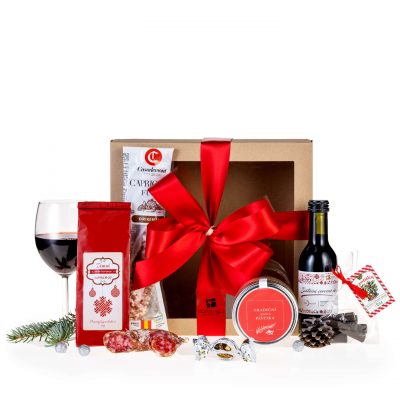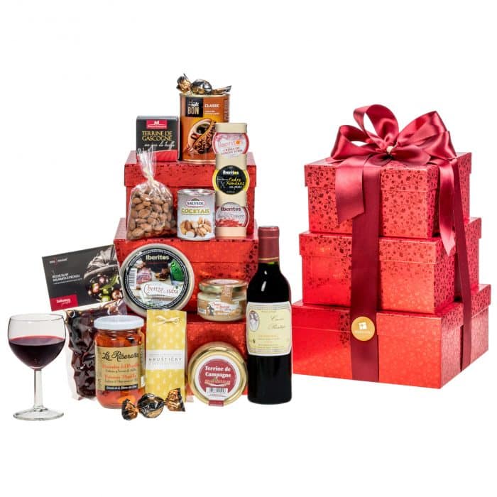 Výjimečná a bohatě naplněná kaskáda v rubínové barvě. V každé z dárkových krabiček naleznete znamenité delikatesy, které báječně ladí s francouzským červeným vínem.