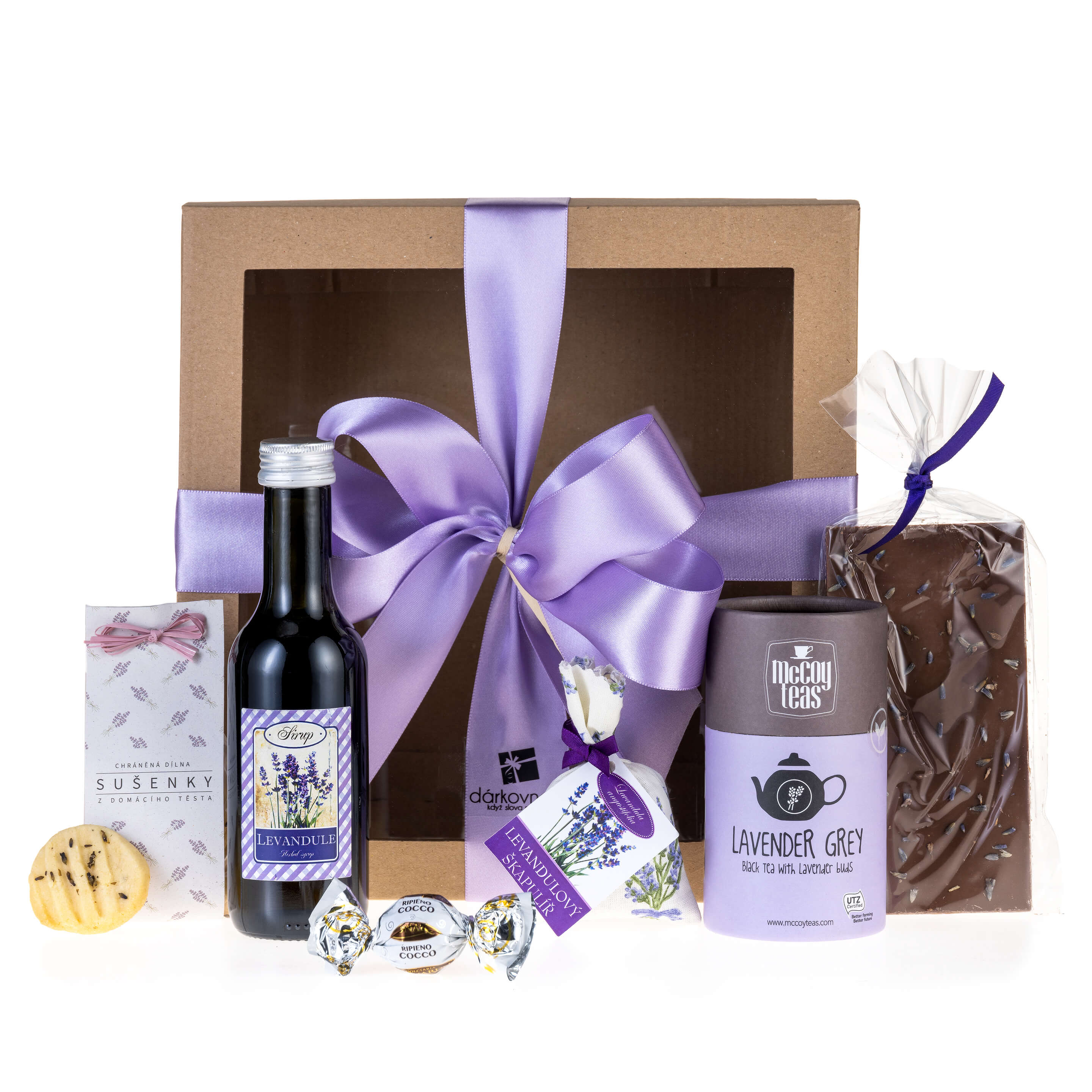 Malý sladký dárkový box naplněný levandulovými delikateskami, který potěší všechny milovnice voňavé Provance .