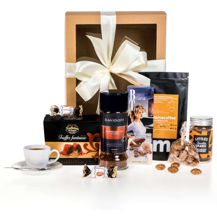 Dárkový koš pro všechny milovníky opojné vůně kávy. V boxu naleznete kromě klasické instantní kávy také instantní kávu s vůní pomeranče a mletou prémiovou kávu s vůní mléčné čokolády a se sladkými tóny žlutého melounu. Dále také lahodné kávové pralinky a Cappcucino Truffles.