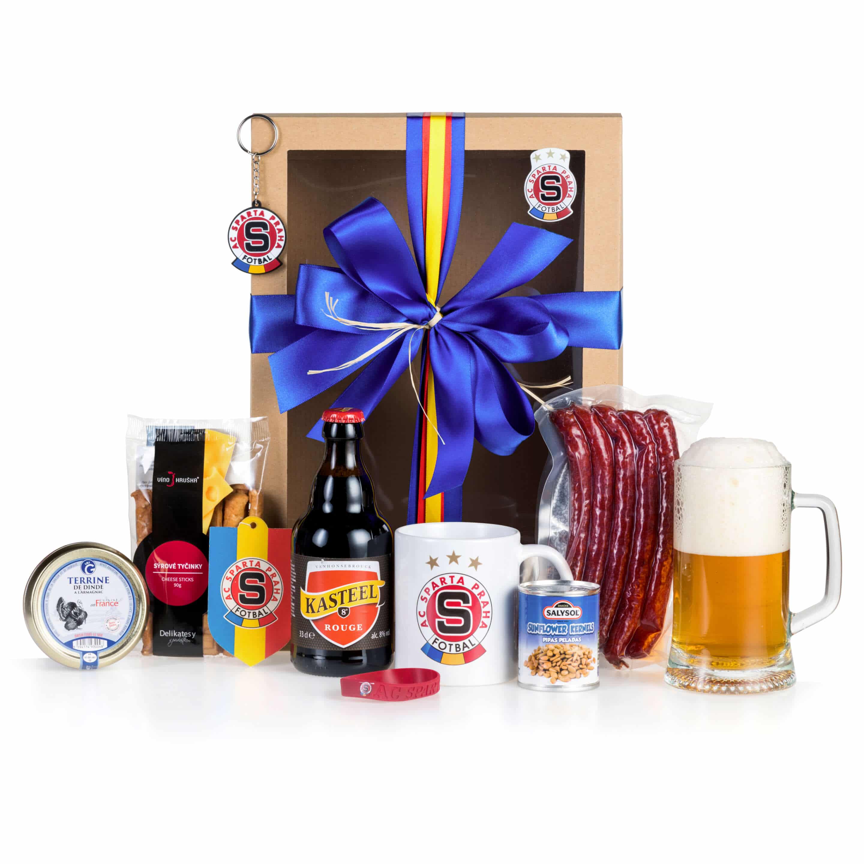Pro všechny fanoušky fotbalového týmu Sparta! Dárkový box sladěný do barev družstva, obsahuje kromě jiných delikates výborné „chlapské“ pivo Kasteel, ale také dárkové předměty s logem oblíbeného týmu.