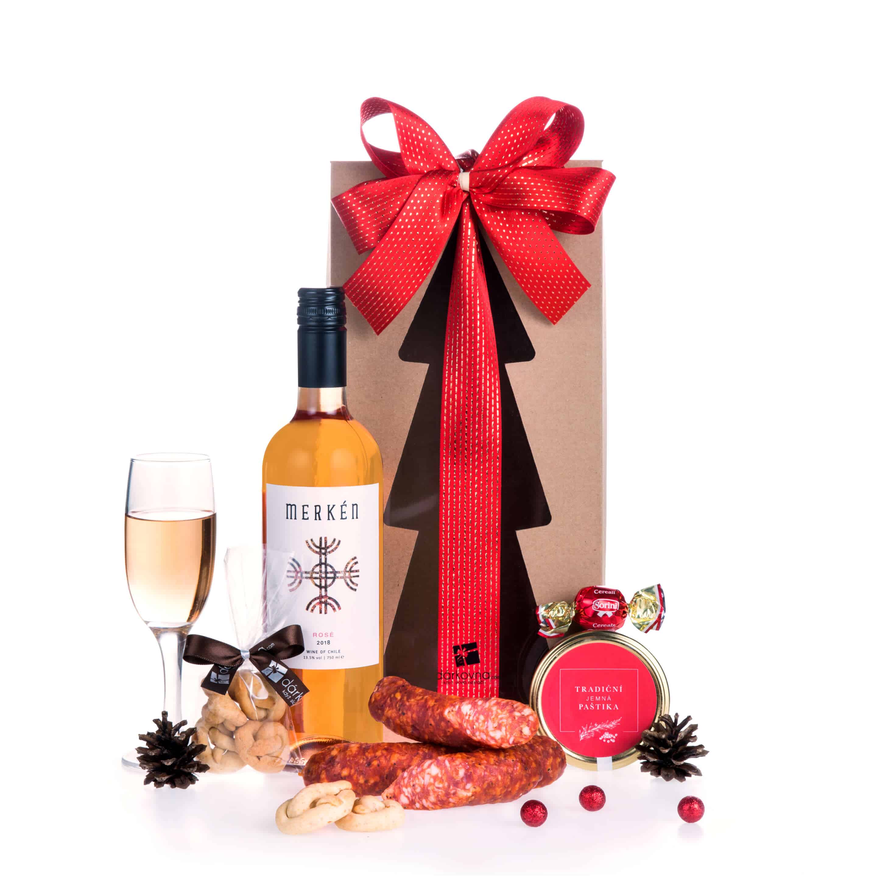 V dárkovém boxu s vánočním motivem se ukrývá dárek, který potěší každou ženu! Růžové chilské víno, lahodná jemná paštika a malá porce křehkých domácích preclíčků se škvarky. Ideální také jako firemní dárek.