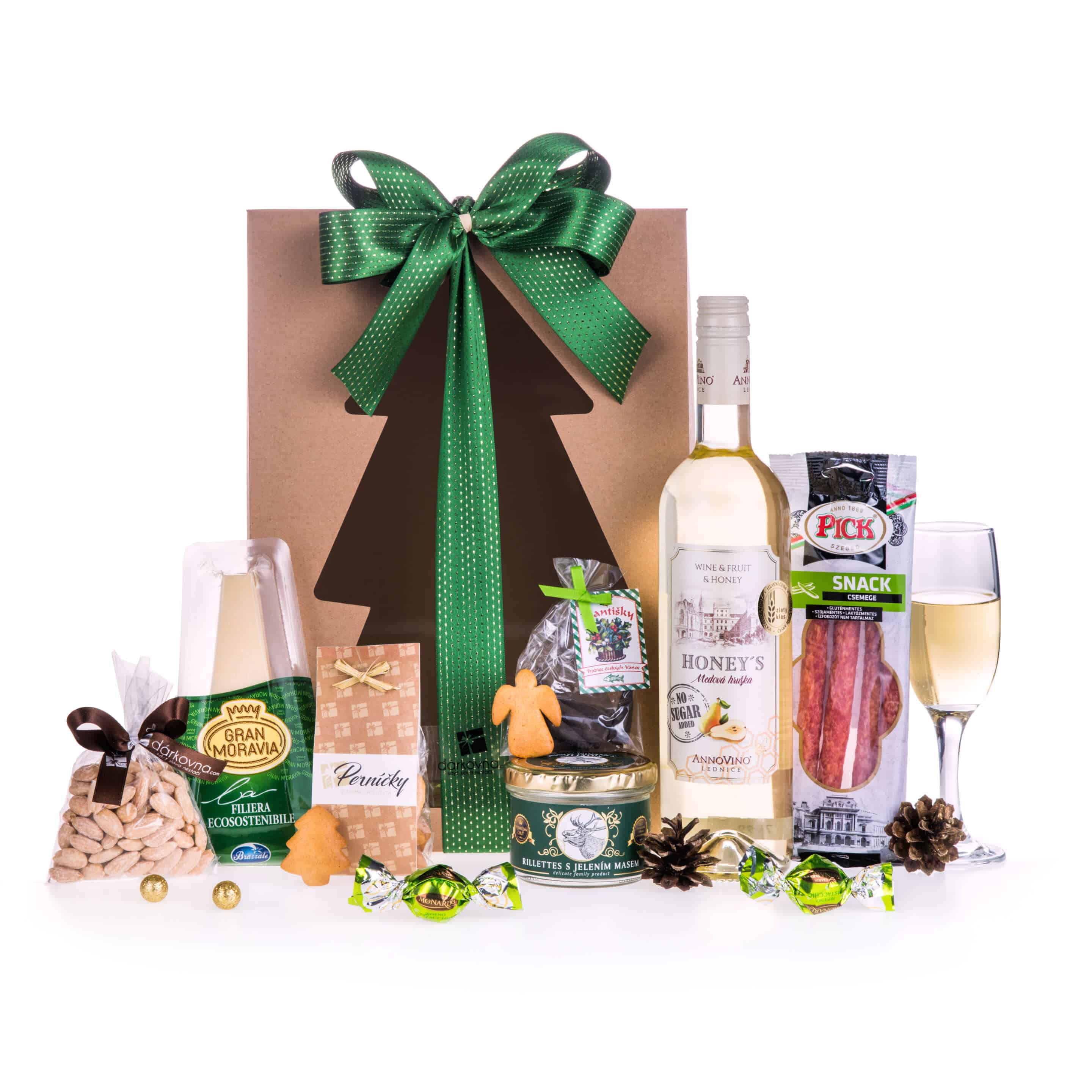 V jednom dárkovém boxu je ukryto vánoční pohoštění pro celou rodinu. Pro pořádné chlapy je zde zvěřinová paštika a jemné klobásky, ženy si pochutnají na tradičním sýru Gran Moravia a především na lahodném víně s příchutí hrušek. Děti zase milují chuť perníčků, které zkrátka nesmí na Vánoce chybět!
