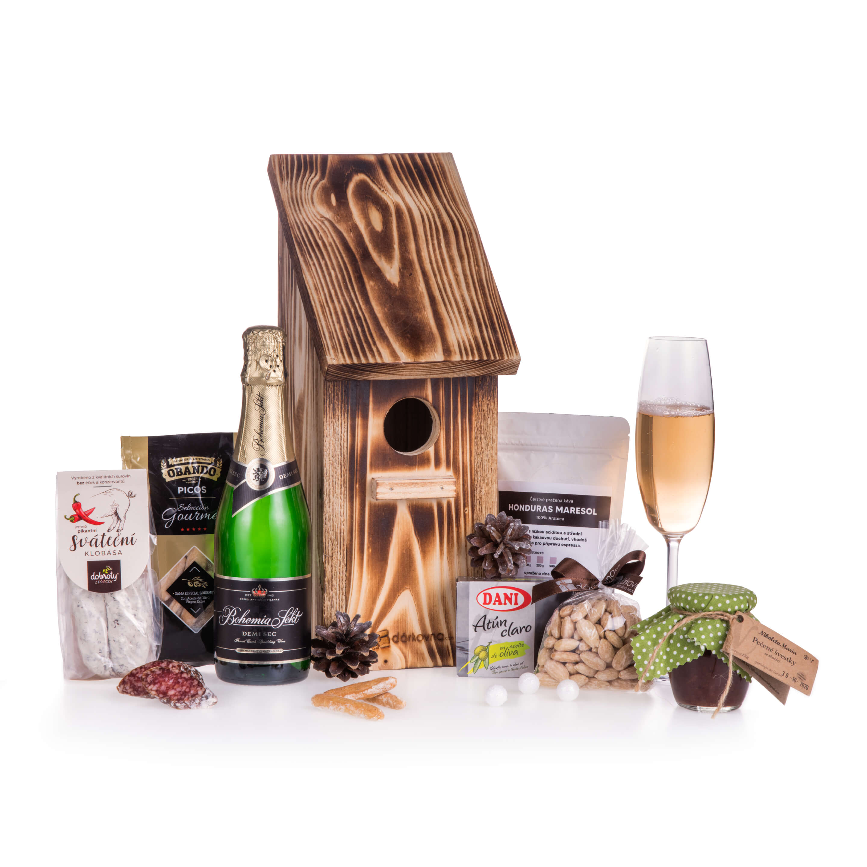 Buďte originální! Darujte vtipný a přitom užitečný dárek, ze kterého budou mít radost všichni členové rodiny. Ptačí budka je vyrobená z masivního dřeva a má odnímatelnou stříšku. Dovnitř jsme dárkově zabalili samé vánoční pochoutky, které výborně chutnají. Tento dárek musí překvapit a potěšit každého.