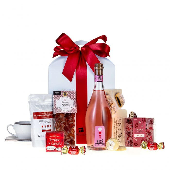 Úžasný dárek pro ženy, který v sobě ukrývá milá překvapení. Proseccu v růžovém provedení podlehne snadno každá žena, stejně jako originální čokoládě RUBY vyrobené na zakázku a dokonale sladěné s lesním ovocem. Čerstvě pražená káva je třešničkou na pomyslném dortu.