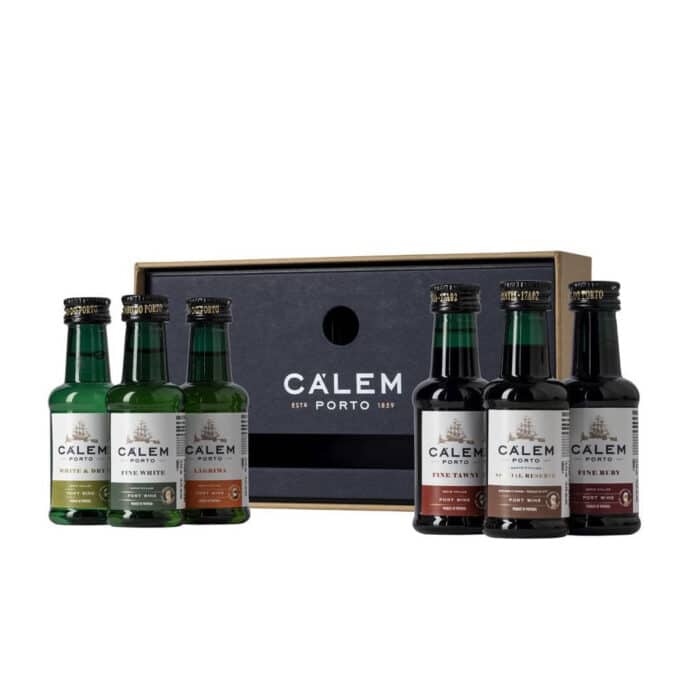 Cálem – velká dárková degustační sada portských vín. Obsahuje: základní červené portské ruby, tawny, white, lágrima, white and dry a special reserva. Servírujeme jako aperitiv, či digestiv. Objem jednotlivých lahviček = velký panák (0,05l). K vyzrálým sýrům, červenému masu či dezertům. 6x 0,05l