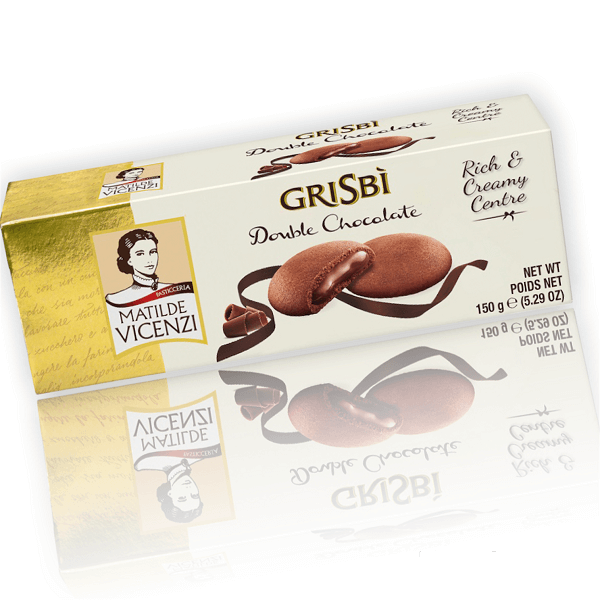 Grisbí čokoládové sušenky. Rodinná firma od roku 1905 přináší Matilde Vicenzi světu dokonalost italského jemného pečiva. Se zaměřením na inovace pracují na zachování původních chutí tradičních receptur a zároveň udržují dokonalost v umění cukrovinek. 135g