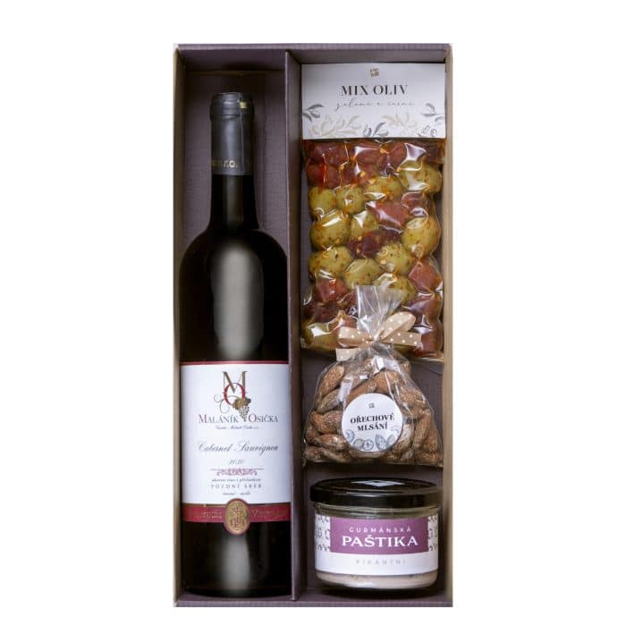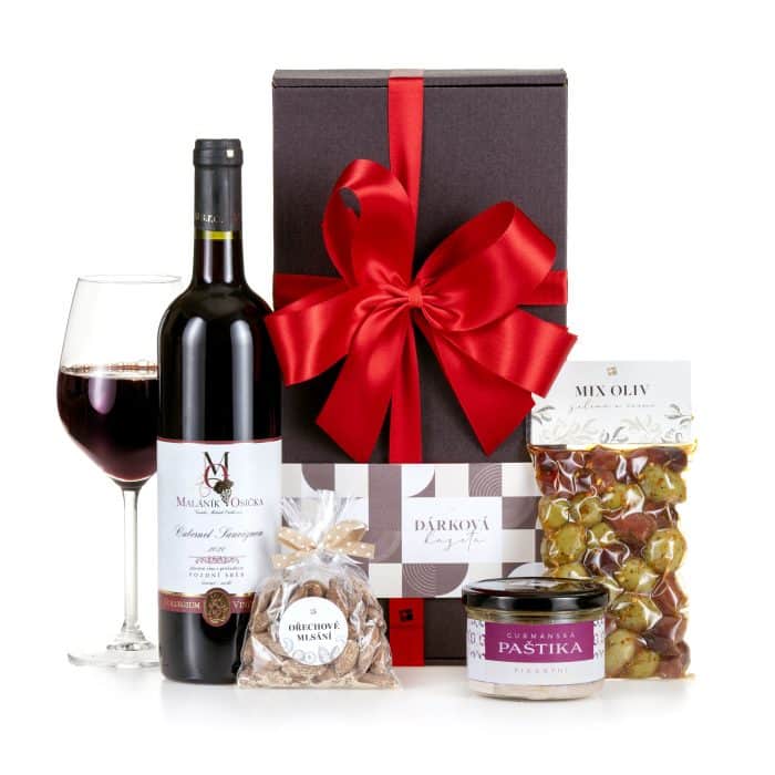Dárkový box pro milovníky červeného kvalitního vína a delikates. Vhodné jako poděkování i jako firemní dárek.