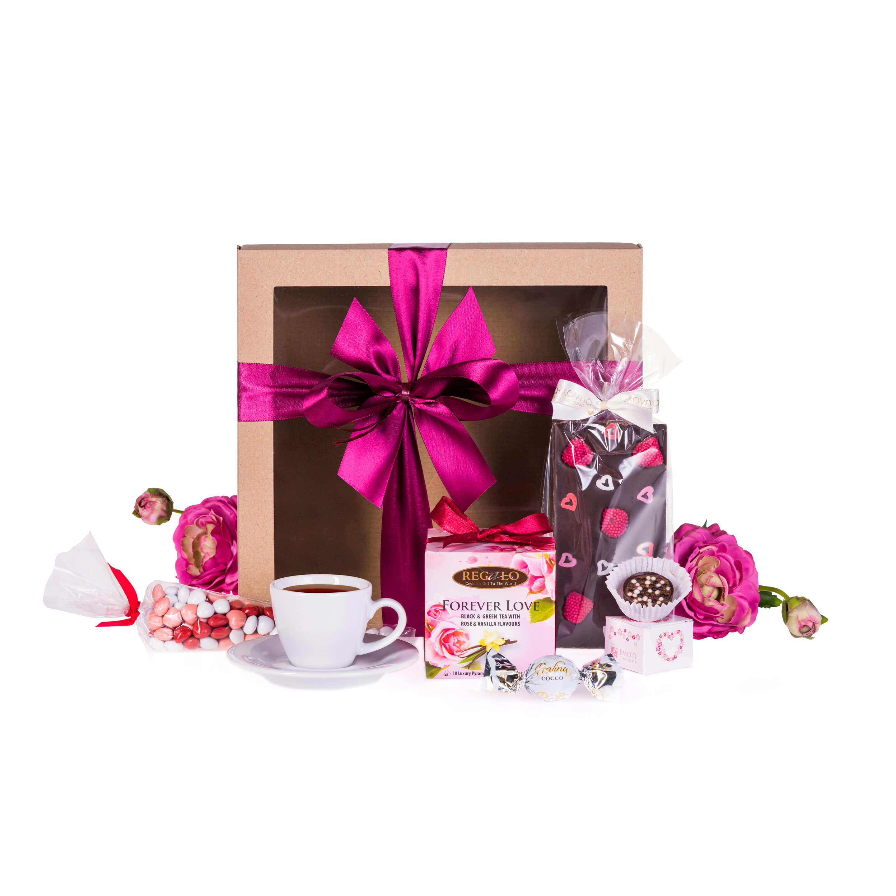 Růžovo-fialkový box je opravdovým dárkem z lásky! Romanticky sladěný dárek, kterým řeknete, co opravdu cítíte a nikdo nebude na pochybách! Součástí dárku je také umělý květ, který krásně ladí s ostatními dobrotami.