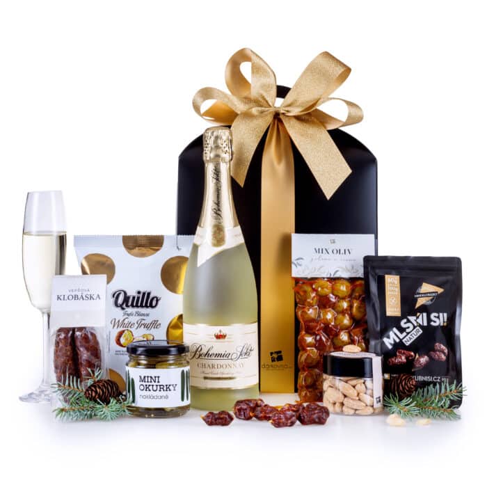 Elegantní dárkový koš je nejlepším dárkem k slavnostním příležitostem. Může se jednat o oslavu či Novoroční posezení, vždy obdarovaného okouzlíte. A co najdete uvnitř ? Jen ty nejlepší speciality z našich novinek i stálých produktů. Takže večírek může začít!