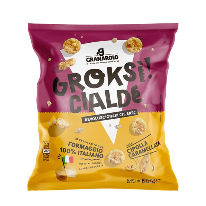 Caramelized Onion – Sýrový snack Groksi to jsou lahodné a křupavé kousky sušených sýrů, bohaté na proteiny a vápník, bez lepku a laktózy. Vhodné pro vegetariány a bez konzervantů.