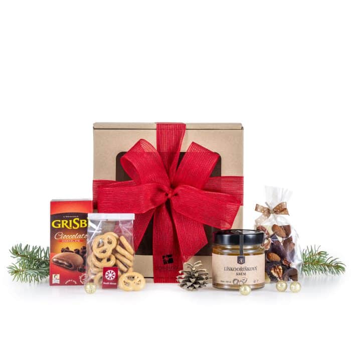 Dárkové balení – látková vánoční mašle, sisalová vlákna jako dekorace, ozdobná dárková kartička (je možné přidat osobní vzkaz, který na kartičku ručně přepíšeme zlatým perem).