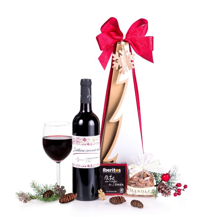 Efektní vánoční dárek! Již na první pohled potěší a vykouzlí úsměv na tváři. Uvnitř dárkové krabičky ve tvaru stromečku je ukryté výtečné víno, španělská lahodná terinka a sáček křupavých mandlí. Dárek vhodný pro každého i jako poděkování zaměstnancům či obchodním partnerům.