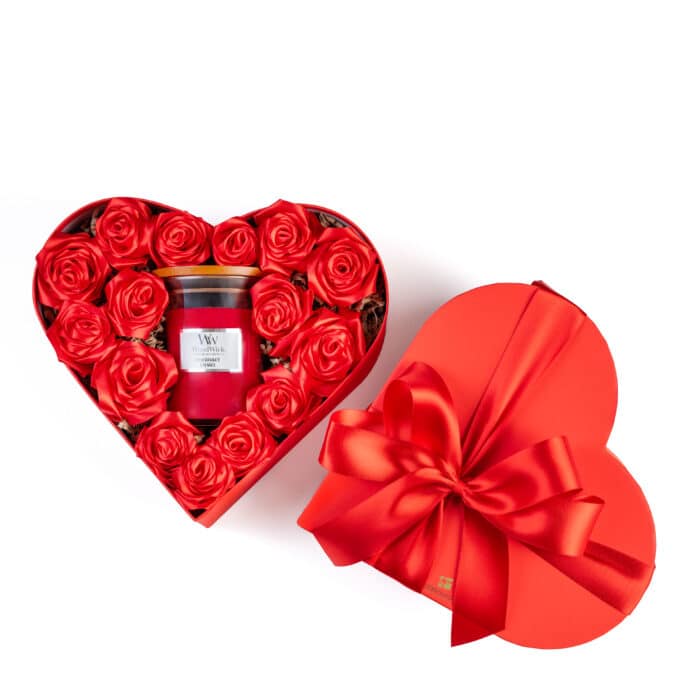 Efektní dárek pro milovanou osobu, nebo jako svatební dar. Uvnitř dárkového srdce se ukrývá vonná svíčka a ručně vyráběné látkové květy růže. Celkový dojem z dárku obdarovanou osobu určitě mile překvapí.